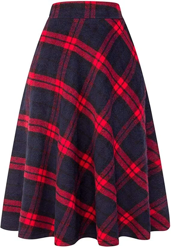 IDEALSANXUN Womens High Elastic Waist Maxi Skirt A-line Plaid Winter Warm Flare Long Skirt